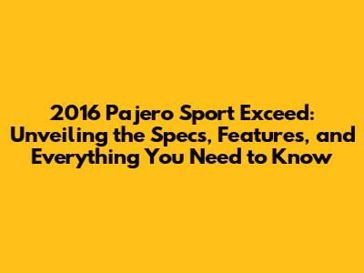 Unpacking the 2016 Pajero Sport Exceed: A Deep Dive into Specs
