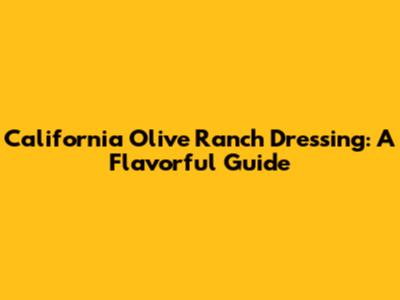 California Olive Ranch Dressing: A Flavorful Guide