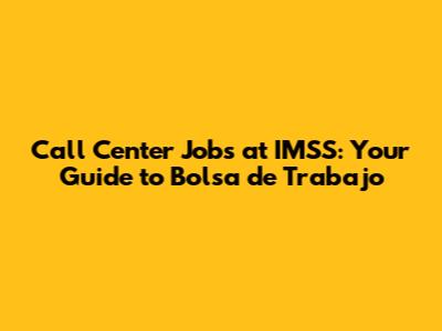 Call Center Jobs At IMSS: Your Guide To Bolsa De Trabajo