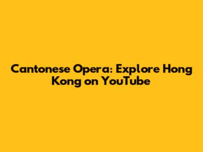 Cantonese Opera: Explore Hong Kong On YouTube