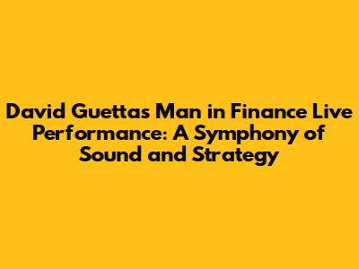 Hey guys! Ever wondered what happens when the electrifying beats of a global music superstar like David Guetta collide with the sharp minds of the finance world? Well, get ready, because we're diving deep into his epic "Man in Finance" live performance. This isn't just any concert; it's a unique fusion that brings together the energy of a massive audience with the intellectual rigor of financial expertise. Imagine the bass dropping as complex market trends are discussed, or the crowd roaring as investment strategies unfold on screen. It’s a concept that’s as bold and innovative as Guetta's own musical journey. We're talking about a meticulously crafted experience designed to resonate with both seasoned finance professionals and music lovers alike. The "Man in Finance" theme isn't just a catchy title; it's a reflection of how structured thinking, precision, and a keen understanding of dynamics – elements crucial in both music production and financial markets – can create something truly spectacular. This performance aims to be more than just entertainment; it's an exploration of how rhythm, harmony, and foresight play pivotal roles in success, whether on the DJ decks or on the trading floor. It’s about understanding the underlying patterns, the build-ups, the climaxes, and the resolutions, all while keeping a pulse on the ever-changing environment. The intention is to bridge two seemingly disparate worlds, showcasing the universal principles of success and the power of passion coupled with expertise. Get ready for an unforgettable night where the financial world gets its own soundtrack, orchestrated by none other than the legendary David Guetta.