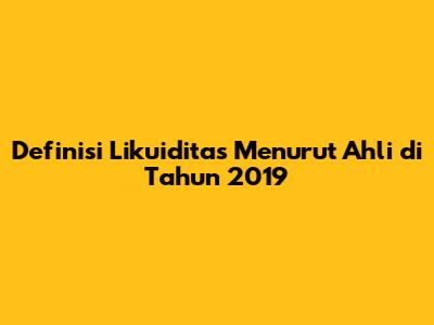Definisi Likuiditas Menurut Ahli Di Tahun 2019
