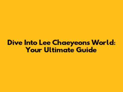 Dive Into Lee Chaeyeon's World: Your Ultimate Guide