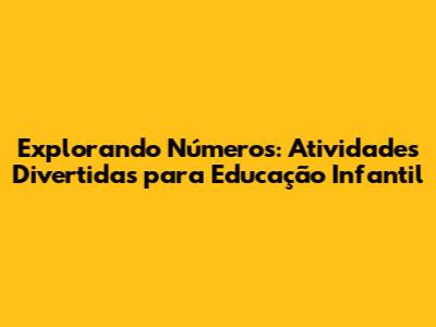 Explorando Números: Atividades Divertidas Para Educação Infantil