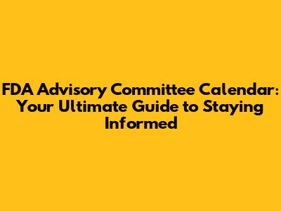 Hey there, health enthusiasts and industry professionals! Are you trying to keep up with the FDA Advisory Committee Calendar? Well, you've come to the right place. Navigating the world of FDA meetings can feel like a maze, but don't worry, I'm here to break it down for you. This comprehensive guide will equip you with everything you need to know about the FDA Advisory Committee Calendar, from what it is to how it impacts you. Get ready to dive in and become an expert on these crucial meetings.