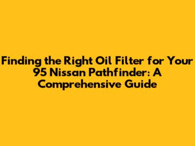 Hey there, fellow gearheads! If you're here, chances are you're diving into some maintenance for your trusty 1995 Nissan Pathfinder. And what's one of the most crucial, yet often overlooked, parts of that maintenance routine? Yep, you guessed it – the oil filter! Keeping that engine clean and running smoothly is key, and the right oil filter is your first line of defense. So, let's get down to brass tacks and figure out what you need to keep your '95 Pathfinder purring like a kitten. This guide will walk you through everything, from understanding the importance of the right oil filter to knowing where to find it. We'll also cover some common mistakes to avoid and some tips to keep your Pathfinder running for years to come. Buckle up, and let's get started!
