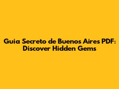 Unveiling the Magic: What is the Guia Secreto de Buenos Aires PDF?