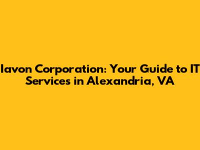 Are you looking for reliable IT services in Alexandria, Virginia? Then you might have stumbled upon Iavon Corporation. In this article, we'll dive deep into what Iavon Corporation does, what services they offer, and how they can help your business thrive in today's digital age. Let's get started, guys!
