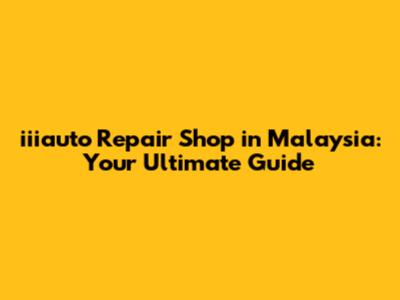 Iiiauto Repair: Your Go-To Shop In Malaysia