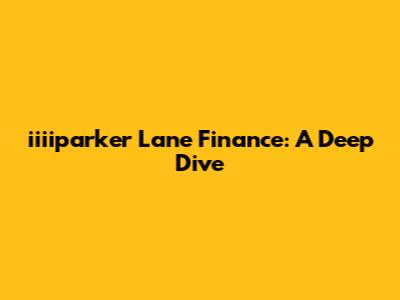 Iiiiparker Lane Finance: A Deep Dive