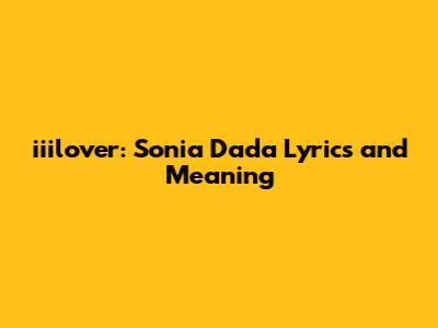 Iiilover: Sonia Dada Lyrics And Meaning