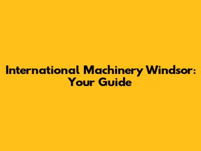 International Machinery Windsor: Your Guide