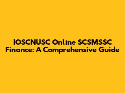 IOSCNUSC Online SCSMSSC Finance: A Comprehensive Guide