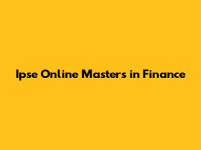 What is Ipse Online Masters in Finance Program?