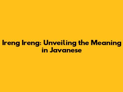 Ireng Ireng: Unveiling The Meaning In Javanese