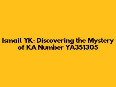 Ismail YK: Discovering The Mystery Of KA Number YA351305
