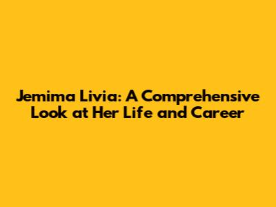 Jemima Livia: A Comprehensive Look At Her Life And Career