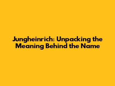 Jungheinrich: Unpacking The Meaning Behind The Name