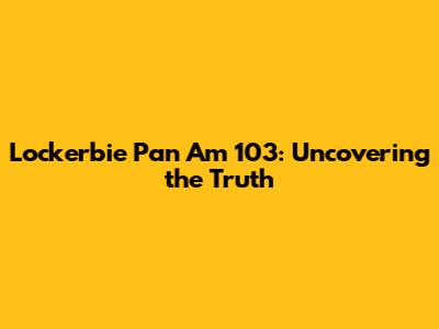 Lockerbie Pan Am 103: Uncovering The Truth