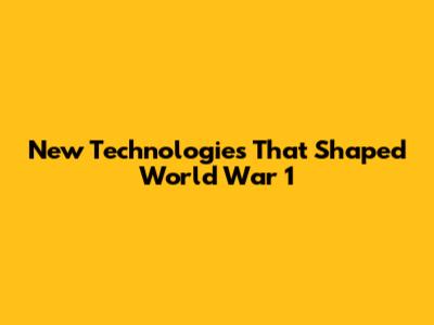 New Technologies That Shaped World War 1
