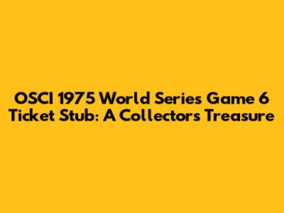 Hey sports fanatics and history buffs! Ever stumbled upon a piece of memorabilia that just screams history? Well, let me tell you about something pretty darn cool: an OSCI 1975 World Series Game 6 ticket stub. This isn't just any old ticket; it's a tangible piece of baseball history, a relic from a series that had everyone on the edge of their seats. Let's dive deep and explore why this little piece of paper is such a big deal, and why it's a treasure for any collector.