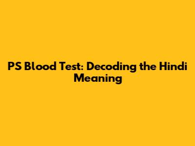 PS Blood Test: Understanding The Hindi Meaning