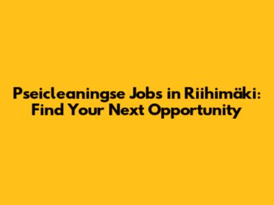 Pseicleaningse Jobs In Riihimäki: Find Your Next Opportunity