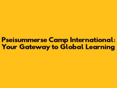 Pseisummerse Camp International: Your Gateway To Global Learning