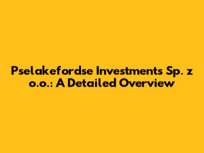 Pselakefordse Investments Sp. Z O.o.: A Detailed Overview