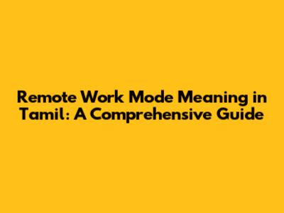 Hey guys! Ever wondered about remote work mode meaning in Tamil? Well, you're in the right place! In today's digital age, remote work has exploded, transforming how we work and live. It's not just a trend; it's a paradigm shift, changing how businesses operate and how employees experience their jobs. This guide will break down everything you need to know about remote work, specifically focusing on its meaning and implications in the Tamil language and context. We'll explore what it means to work remotely, the benefits, challenges, and some cool examples of how it's being embraced in Tamil Nadu and beyond. So, buckle up; it's going to be a fun and insightful journey! We'll cover everything from the basic definitions to the nitty-gritty details of making remote work a success. Let's dive in!
