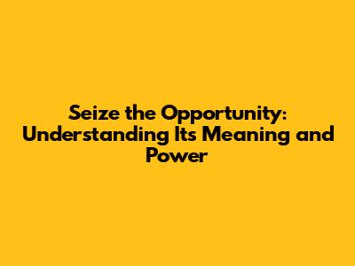 What Does "Seize the Opportunity" Really Mean?