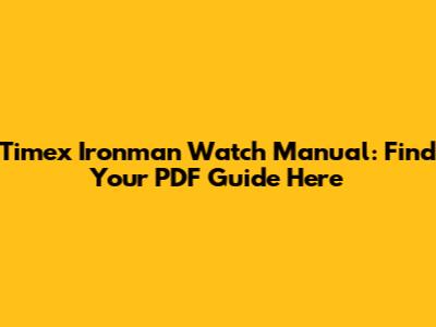 Timex Ironman Watch Manual: Find Your PDF Guide Here