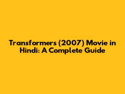 Transformers (2007) Movie In Hindi: A Complete Guide