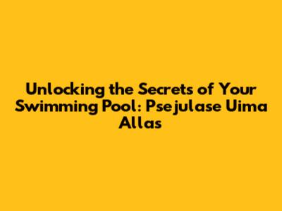 Unlocking The Secrets Of Your Swimming Pool: Psejulase Uima Allas
