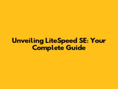 Unveiling LiteSpeed SE: Your Complete Guide
