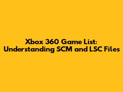 Hey everyone! Ever wondered about those .scm and .lsc files you sometimes stumble upon when dealing with Xbox 360 games? Well, you're in the right place! This article dives deep into Xbox 360 game lists, specifically focusing on what these file extensions mean and why they matter. We'll explore the role of SCM and LSC files in the Xbox 360 gaming world, offering a comprehensive guide for gamers and tech enthusiasts alike. So, let’s get started and unravel the mysteries behind these files, making your gaming experience smoother and more informed!