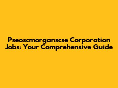 Your Guide To Pseoscmorganscse Corporation Jobs